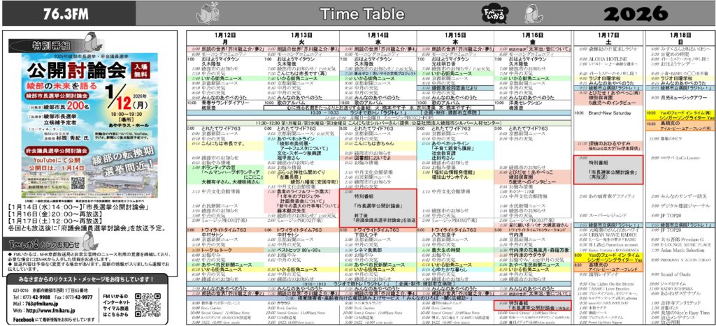 2026年01月12日〜01月18日 | FMいかる